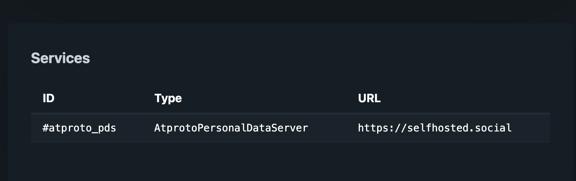 We will talk about the PDS itself in the next section. Just know it holds your data (pictures, posts, likes, etc). When Bluesky or another atproto application needs to sign you in or when you make a post, or like a post it all happens on the PDS. So it's pretty important. Since Bluesky(atproto) is decentralized it needs a road map to get there. That's the point of everything so far under the "Identity" heading. It's the "How do I save or read that data to my PDS". Well once we have the did(phone number) from that proces a atprotocol app,this includes Bluesky, looks up your PDS on something called the PLC, shorten for Public Ledger of Credentials. Aka a global address book. This is the Yellow Pages of Bluesky(atproto). If you go to https://web.plc.directory/did/did:plc:rnpkyqnmsw4ipey6eotbdnnf you'll notice at the top is my PDS. https://selfhosted.social