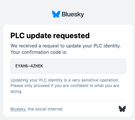 Thanks to Bluesky/atproto being decentralized and if you add a Rotation Key that you own you can submit changes to the PLC without your PDS even being turned on. This is usually what we call an a adversarial migration, meaning your PDS is your adversary since it cannot succesfully migrate your account to a new PDS.