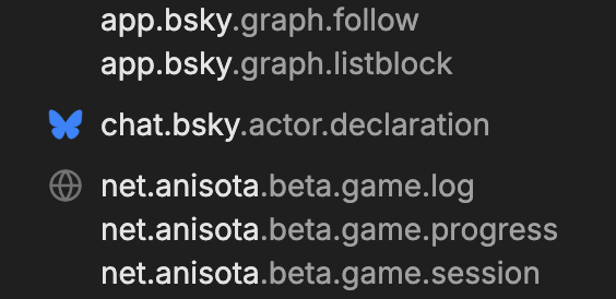 AG: Like I mentioned above, I think Anisota has approached Lexicon design from a really interesting perspective, by asking "OK, what can we reuse from existing Lexicons that are likely to be populated for most users, versus what do we need to add to our own Lexicon to make this app work?"